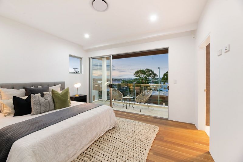 – Three generously sized bedrooms with built-in robes, including a master suite with a private balcony and water views.